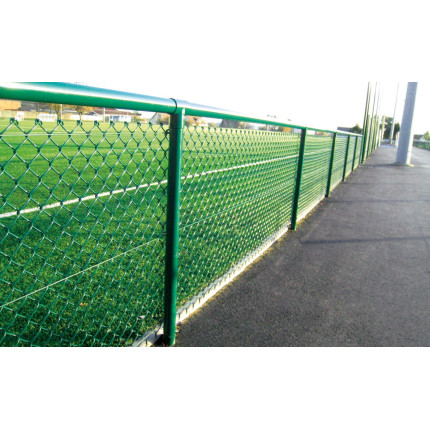 Cette main-courante grillage simple torsion est constituée de poteaux en acier galvanisé plastifié Ø 60 mm et d’un grillage simple torsion lourd Ø 4,4 mm à faible déformation. Les anneaux sont en inox et soudés tous les 50 cm sur les poteaux. Les lisses sont disponibles en aluminium plastifié ou en acier galvanisé. Cette main-courante est livrée avec ses accessoires : grillage, câble gainé, agrafes galvanisées à chaud, serre-câble et raidisseur N°4.