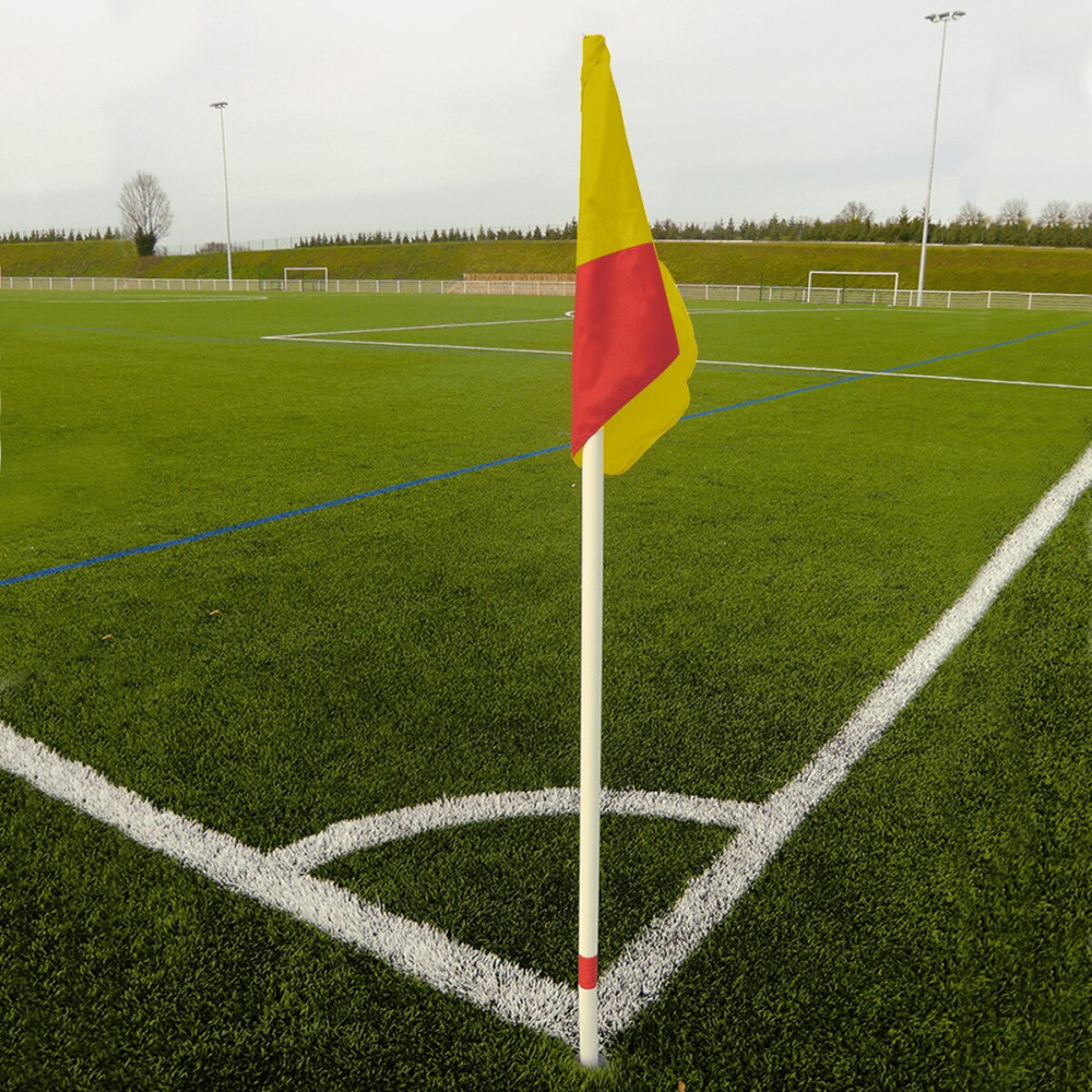 Poteaux réglementaires en PVC flexibles avec fanions. Système articulé et sécurisant qui permet au poteau de se plier sans danger. Coloris : Damiers, jaunes ou rouges. Livré avec sac. Poteau : Ø32mm, L 180cm. Fanion : Longueur 45cm x largeur 45cm. Le jeu de 4.
