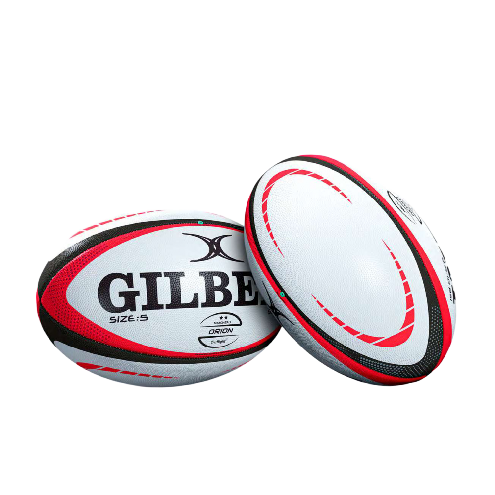 Ballon de rugby Gilbert Orion : grip HD et +00pe de leur progression, de l'initiation au mini rugby jusqu'à la pratique en club. Robuste, précis et conforme aux recommandations World Rugby, il s'adresse aux clubs, écoles de rugby, juniors et collectivités recherchant un ballon fiable pour une utilisation régulière. Grip HD pour une maîtrise optimale Grâce à son grip HD, le Gilbert Orion offre une adhérence supérieure qui facilite les passes, les réceptions et le jeu au pied dans toutes les conditions, y compris pour les jeunes joueurs en apprentissage. Construction cousue main pour une durabilité renforcée Fabriqué avec un revêtement poly-coton et coton 3 plis cousu main, ce ballon résiste à une utilisation intensive et répétée, garantissant une longévité adaptée aux entraînements en club et en école. Valve Truflight™ pour des trajectoires précises La valve Truflight™ améliore la stabilité du ballon en vol et la régularité des trajectoires, pour une meilleure qualité de jeu à l'entraînement comme en match. Surface caoutchouc G-S pour toutes les conditions Sa surface en caoutchouc G-S offre un équilibre idéal entre grip, résistance et confort de jeu, sur terrain sec ou humide, en intérieur comme en extérieur. Conforme aux standards World RugbyLe Gilbert Orion respecte les recommandations World Rugby, assurant un niveau de qualité reconnu pour la pratique en club, en école et en compétition. Disponible en tailles 3, 4 et 5 – deux coloris au choix Adapté à toutes les catégories de joueurs, le Gilbert Orion est proposé en tailles 3, 4 et 5. Disponible en coloris Noir/Rouge et Fluo pour une visibilité optimale sur le terrain.