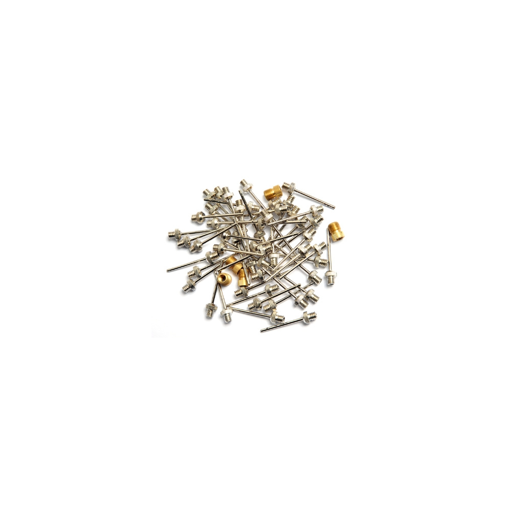 Lot complet comprenant 50 aiguilles de gonflage pour ballons et 5 embouts adaptateurs. Idéal pour clubs sportifs, écoles, collectivités et usage intensif. Compatible avec la plupart des pompes à ballon.